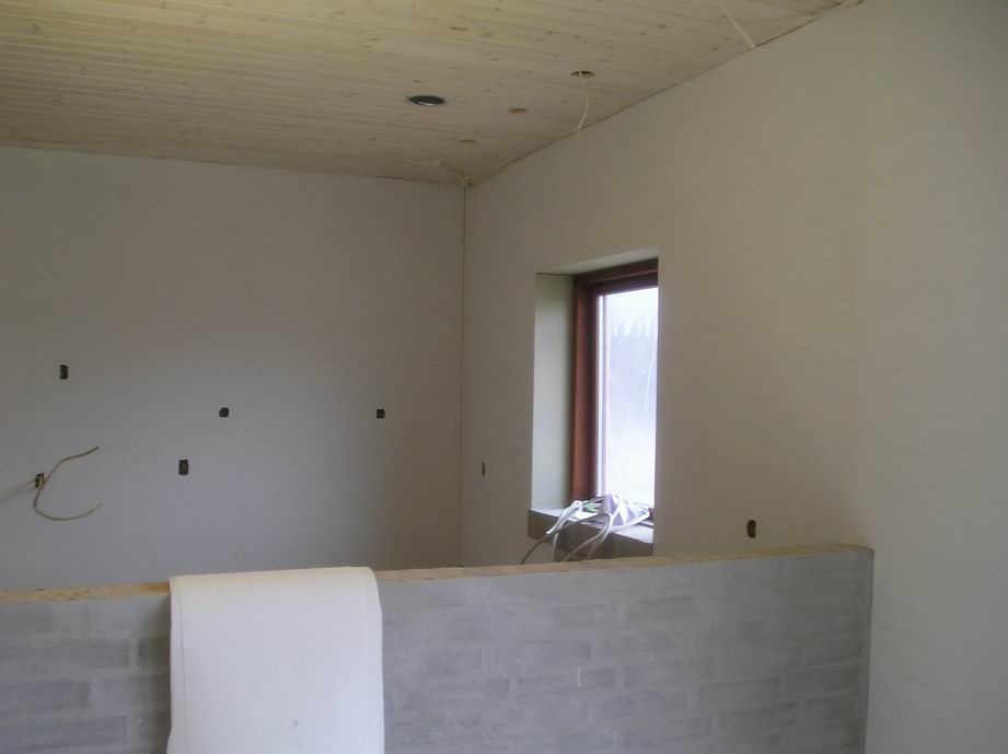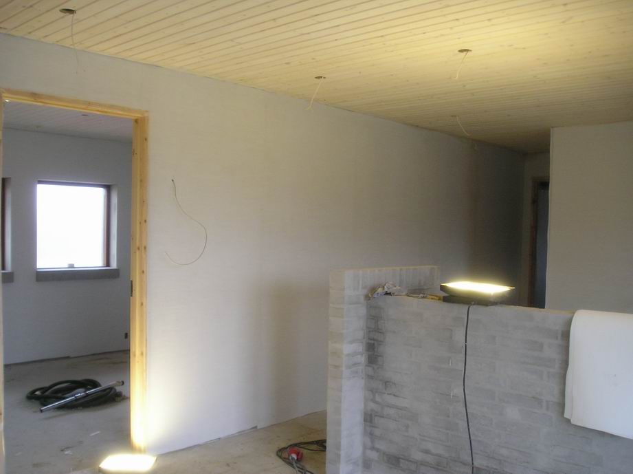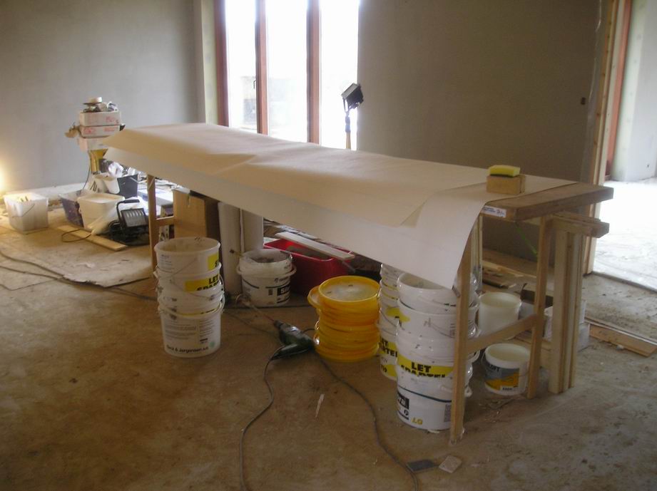 Maleren er i fuld gang. Han skal være færdig med hele huset onsdag aften...